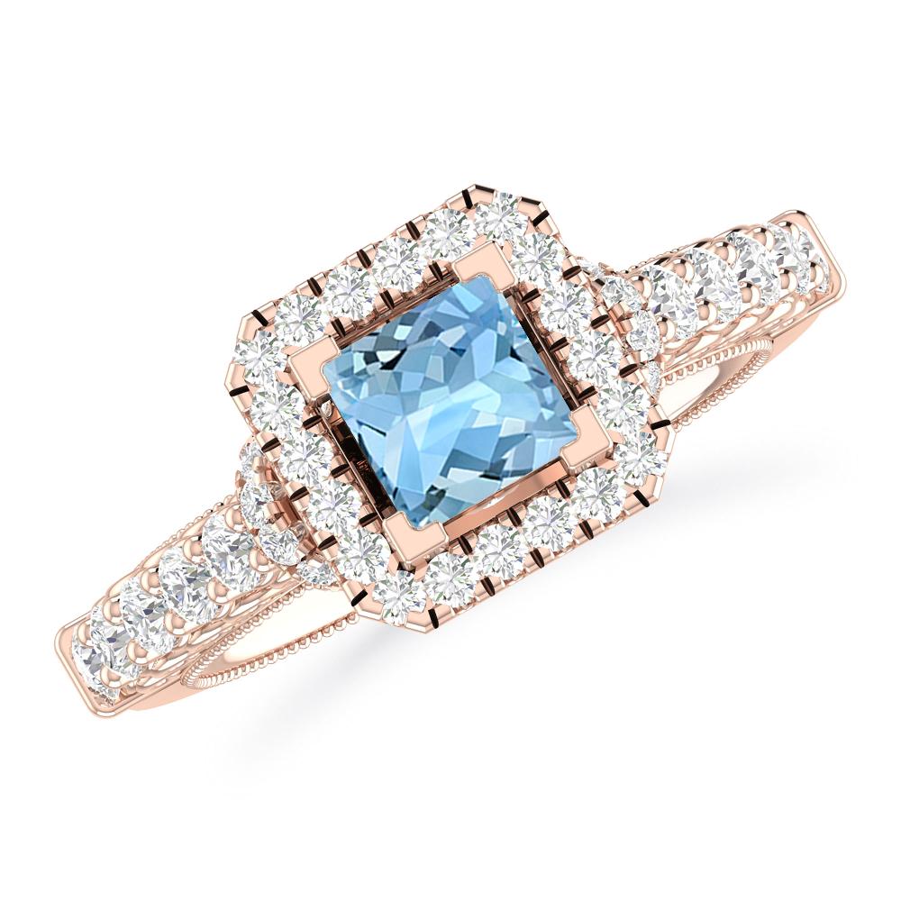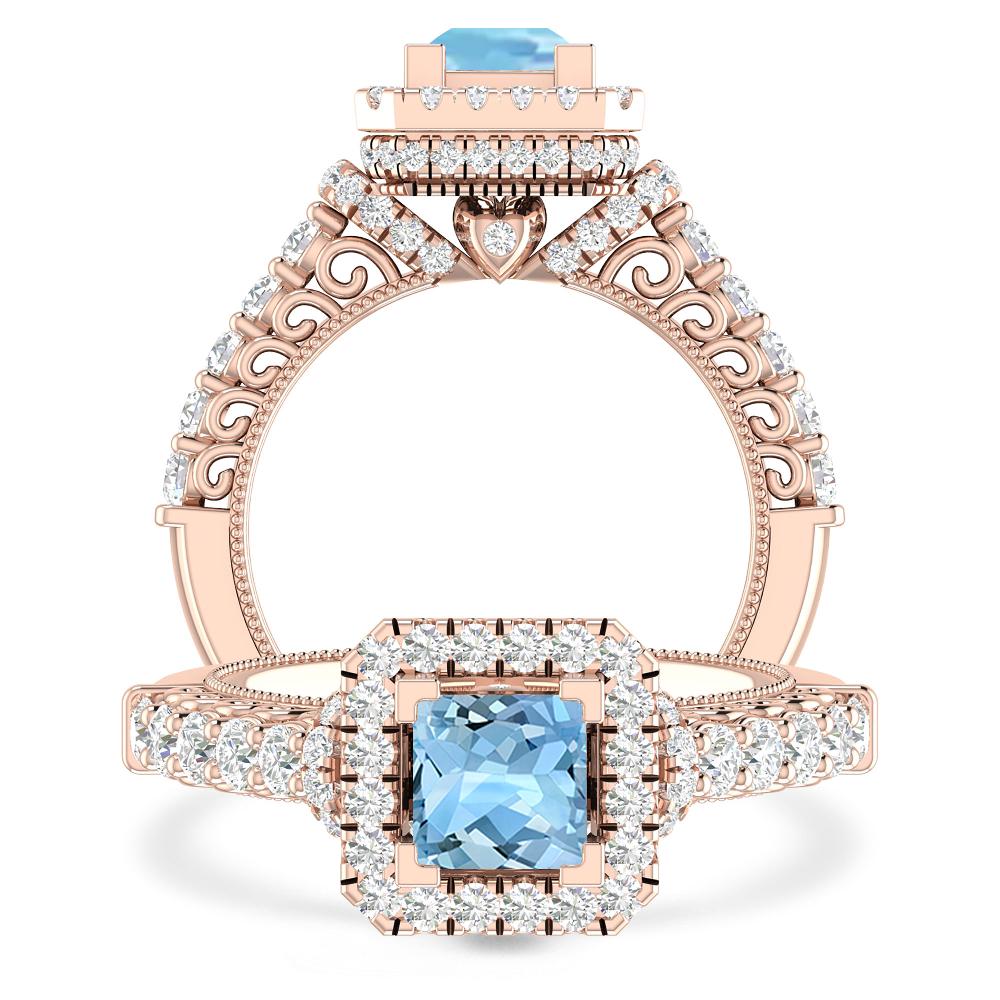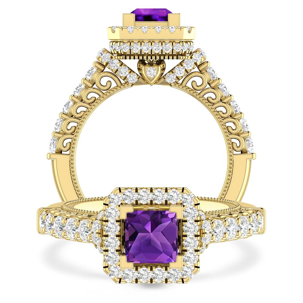 Princess Dual Halo Emerald Ring With Ornate Embellished Shank And Heart Detail