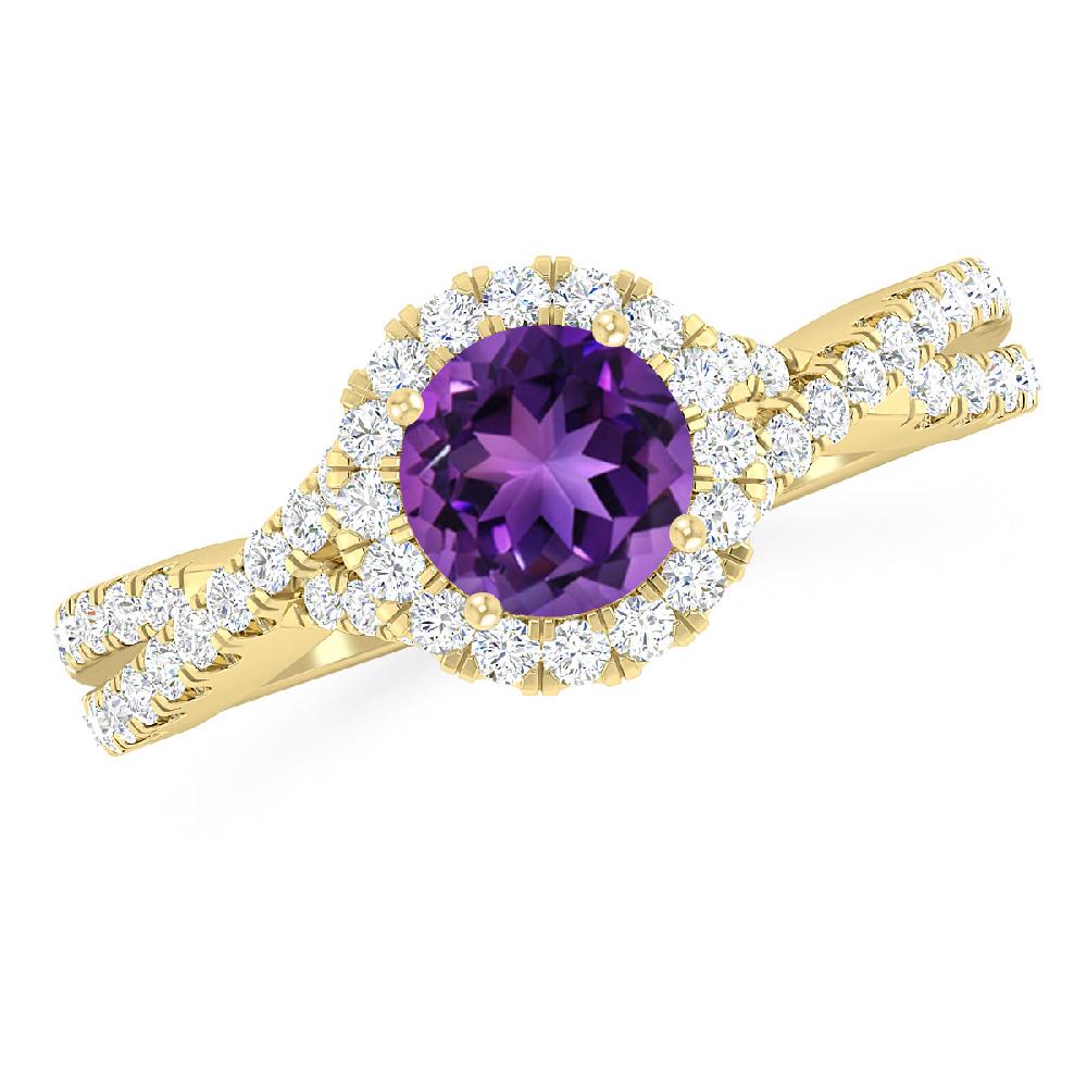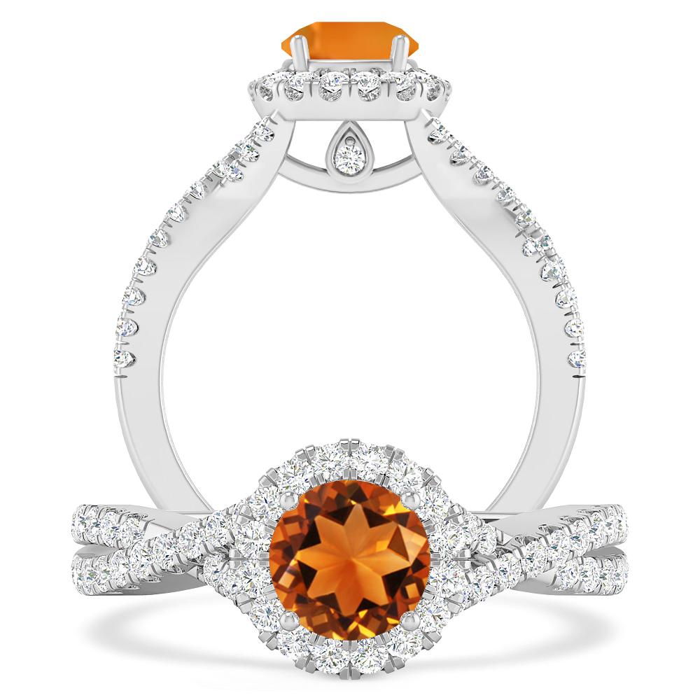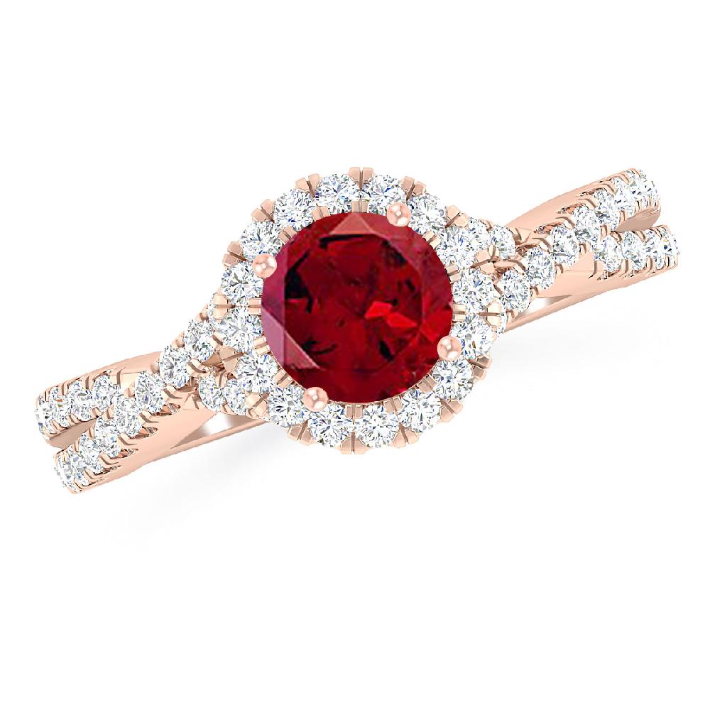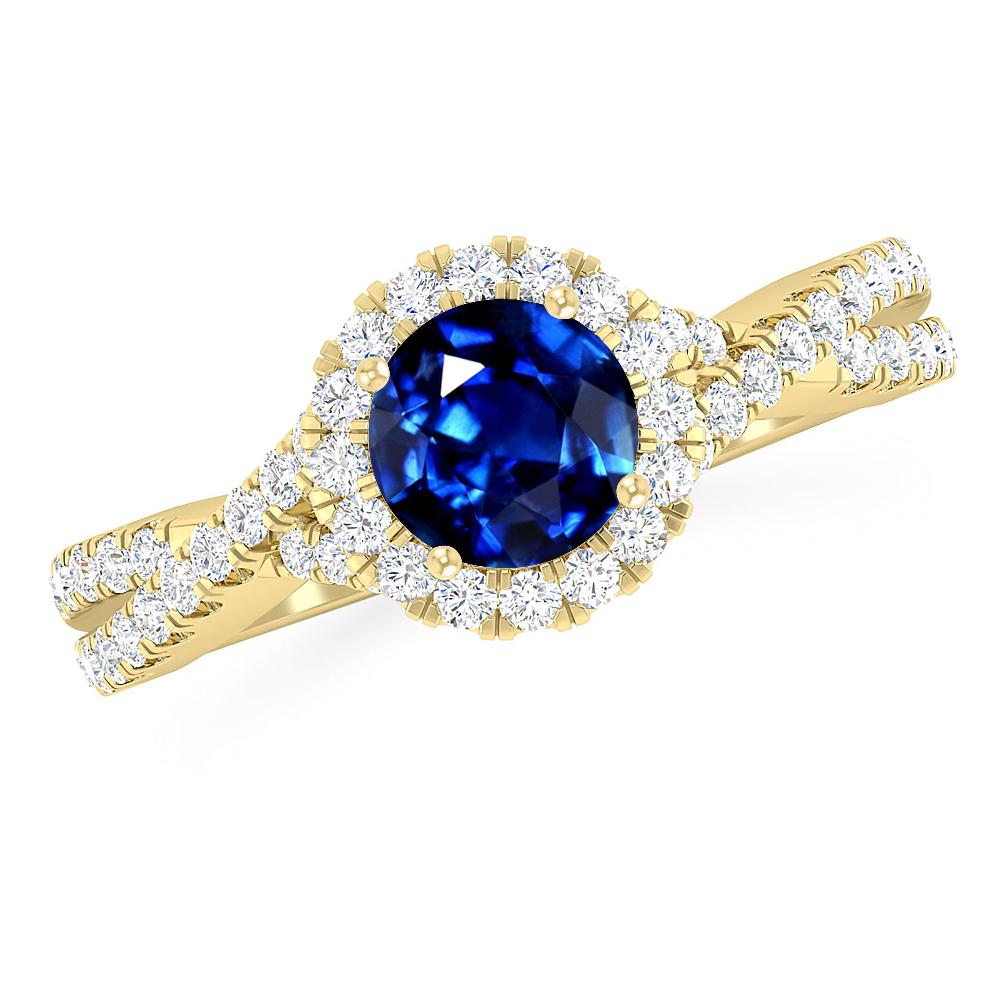 1 1/2 ctw Round Lab Grown Sapphire Halo Engagement Ring With Accented Crossover Shank In 14K White Gold