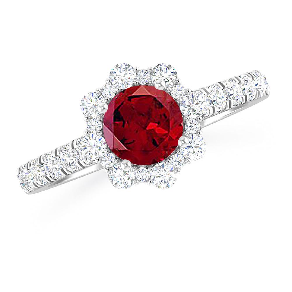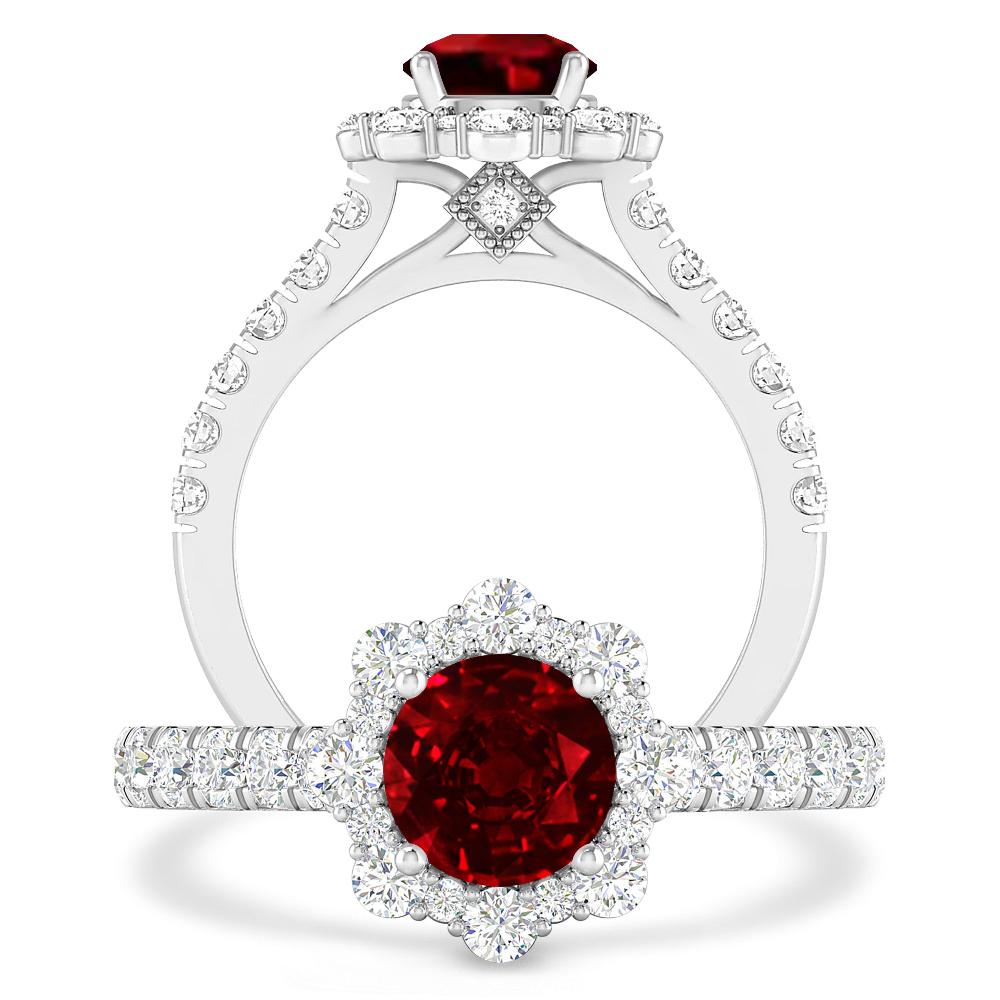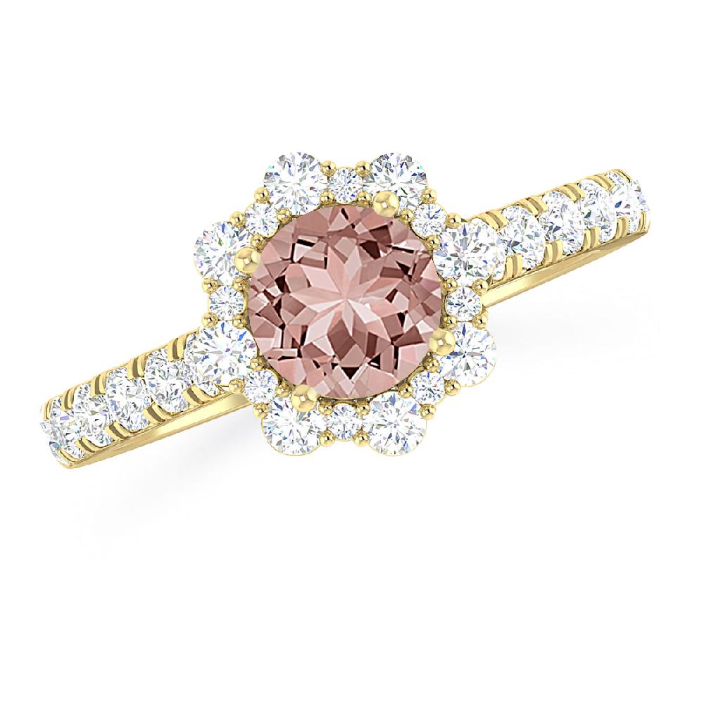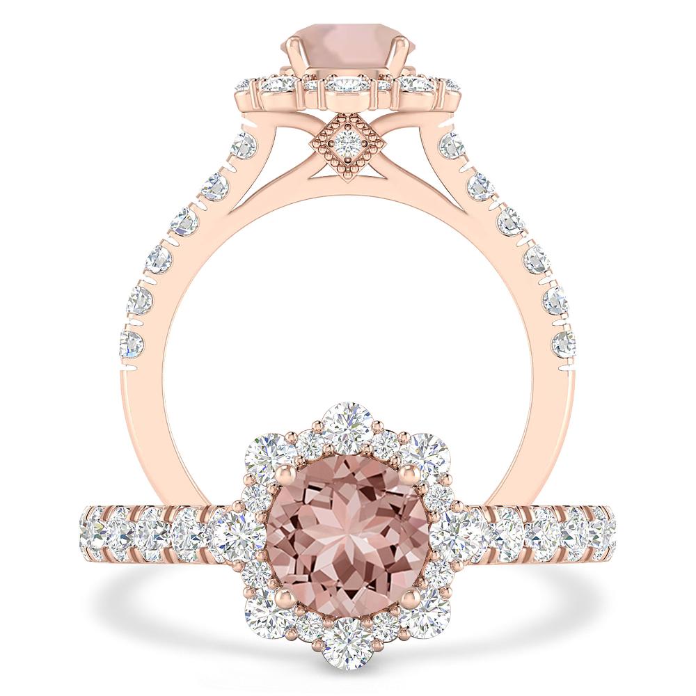 1 7/8 ctw Round Lab Grown Pink Tourmaline Floral Halo Engagement Ring With Diamond Accented Shank In 14K White Gold